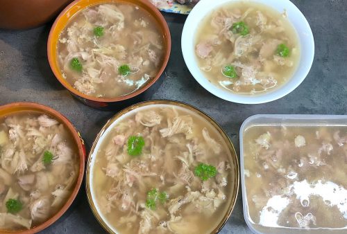 Однак є один момент: є холодець прямо з банки – не найприємніше заняття. Тому краще трохи підігріти та вилити у форму, потім охолодити перед подачею. Після відкриття банки холодець слід вжити протягом 24 годин – це правило застосовується до всіх стерилізованих продуктів.