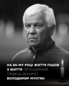 У понеділок, 1 грудня, після тривалої хвороби пішов із життя колишній гравець і тренер «Динамо» Володимир Мунтян, повідомляє прес-служба киян.