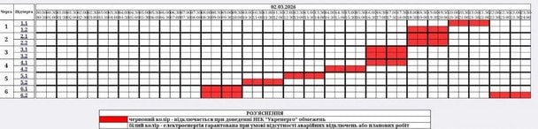 У «Черкасиобленерго» опублікували графік погодинних вимкнень світла на завтра, 2 березня.