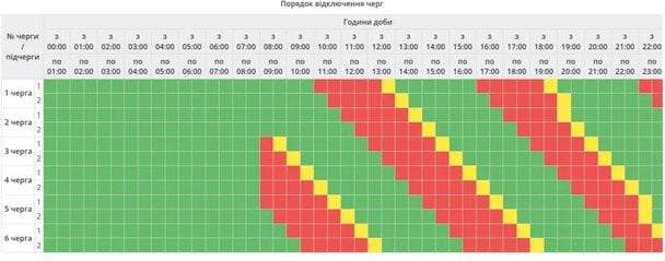 Графік відключення світла в Запорізькій області
