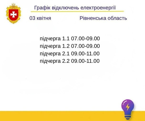 Відключення світла в Україні у п’ятницю, 3 квітня