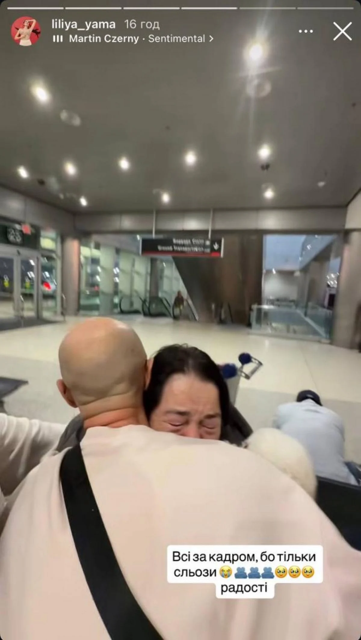 «Ми не бачилися 4 роки. Нарешті будемо обійматися. Все за кадром, тому що тільки сльози радості», — також поділилася в Stories першими емоціями дружина хореографа Ліліана.