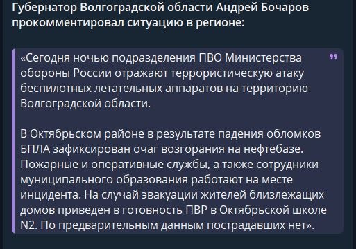 У Волгоградській області РФ після атаки дронів сталася пожежа на нафтобазі. Про це повідомляє губернатор Волгоградської області Андрій Бочаров, передають Патріоти України