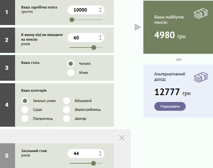 Зверніть увагу! Розрахунки проводилися через пенсійний калькулятор.