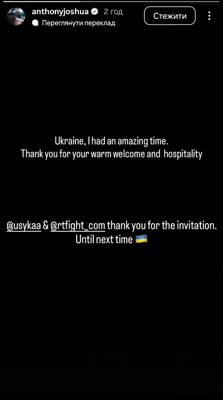 Він подякував Усику за теплий прийом та допомогу в організації поїздки на турнір Rising Stars. Колишній чемпіон світу у надважкій вазі опублікував у інстаграм сторіс, у якій розповів про свої емоції від перебування в країні.