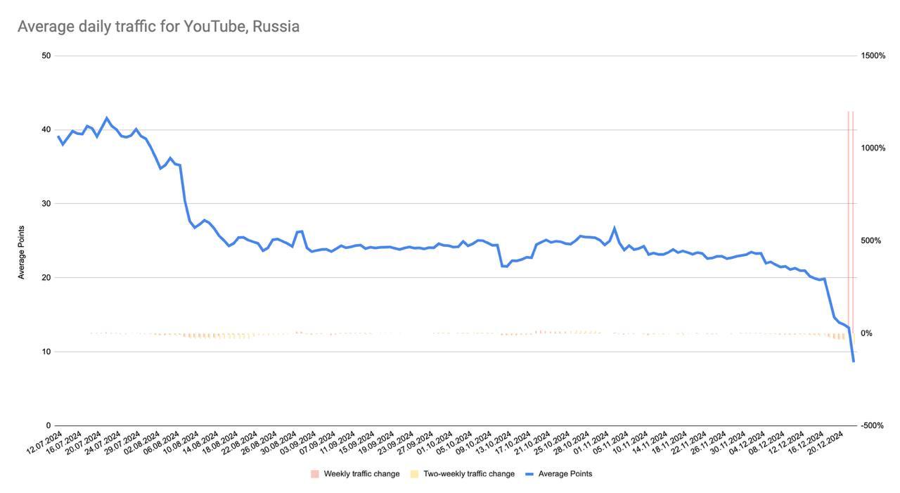 Повідомляється, що багато користувачів по всій РФ не можуть отримати доступ до цієї платформи, а трафік у грудні впав на 80%.