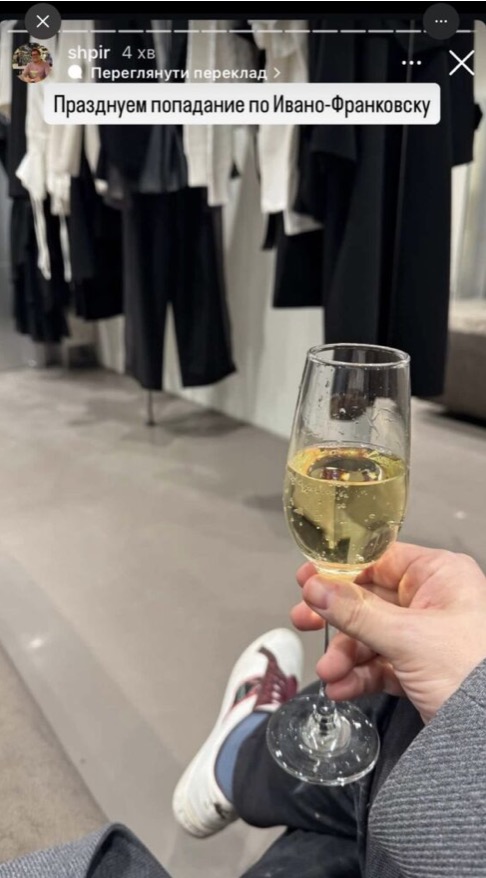 Одразу ж в мережі з’явилася сторіс. Келих шампанського. І підпис російською: «Празднуем попадание по Ивано-Франковску»
