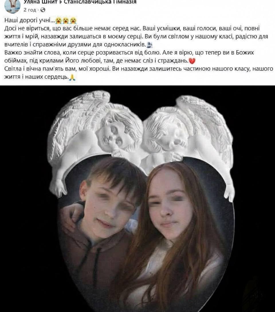 «Наші дорогі учні… Досі не віриться, що вас більше немає серед нас. Ваші усмішки, ваші голоси, ваші очі, повні життя і мрій, назавжди залишаться в моєму серці. Ви були світлом у нашому класі, радістю для вчителів і справжніми друзями для однокласників. Важко знайти слова, коли серце розривається від болю. Але я вірю, що тепер ви в Божих обіймах, під крилами Його любові, там, де немає сліз і страждань. Світла і вічна пам’ять вам, мої хороші. Ви назавжди залишитесь частиною нашого класу, нашого життя і наших сердець», — йдеться у дописі на сторінці школи.