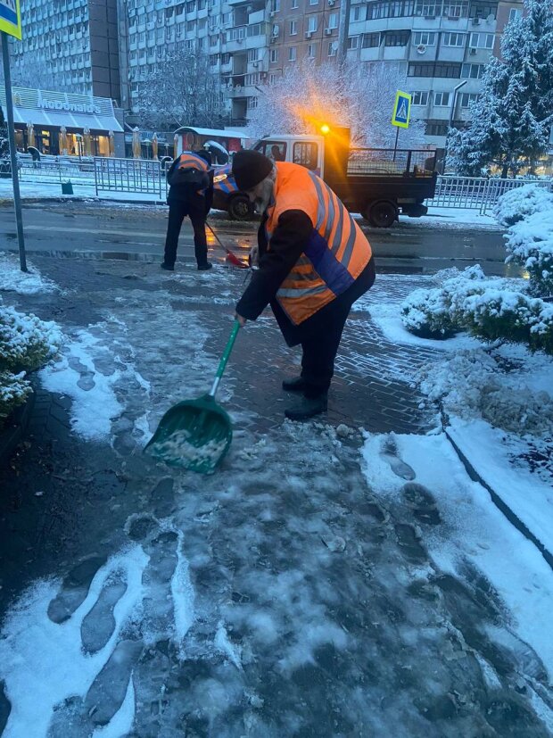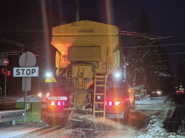 Раптовий сніг також додав роботи і комунальникам в Дніпрі – вони з ночі очищують дороги та тротуари від снігу та ожеледиці